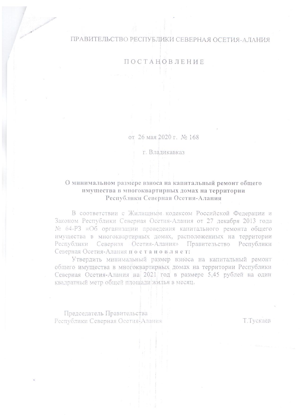 Доводим до вашего сведения, что с 01.01.2021 года минимальный размер взноса на капитальный ремонт общего имущества в многоквартирных домах на территории Республики Северная Осетия-Алания в размере 5,45 рублей на один квадратный метр общей площади жилья в месяц.